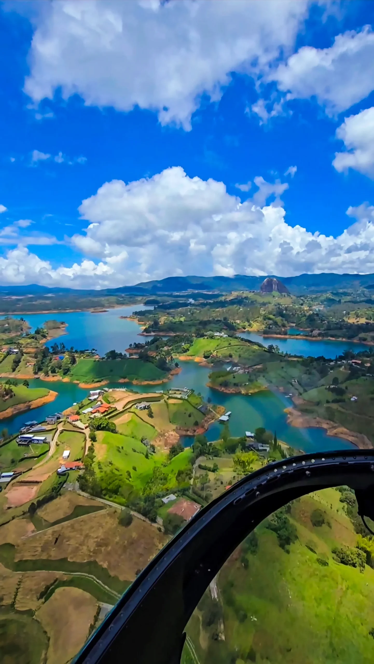 🗺️ Recorrido: Despegue desde el embalse, giro 180° sobre la Piedra del Peñol, embalse Peñol-Guatapé, fincas icónicas, Cruz del Embalse y Réplica del Viejo Peñol.