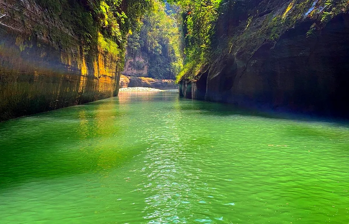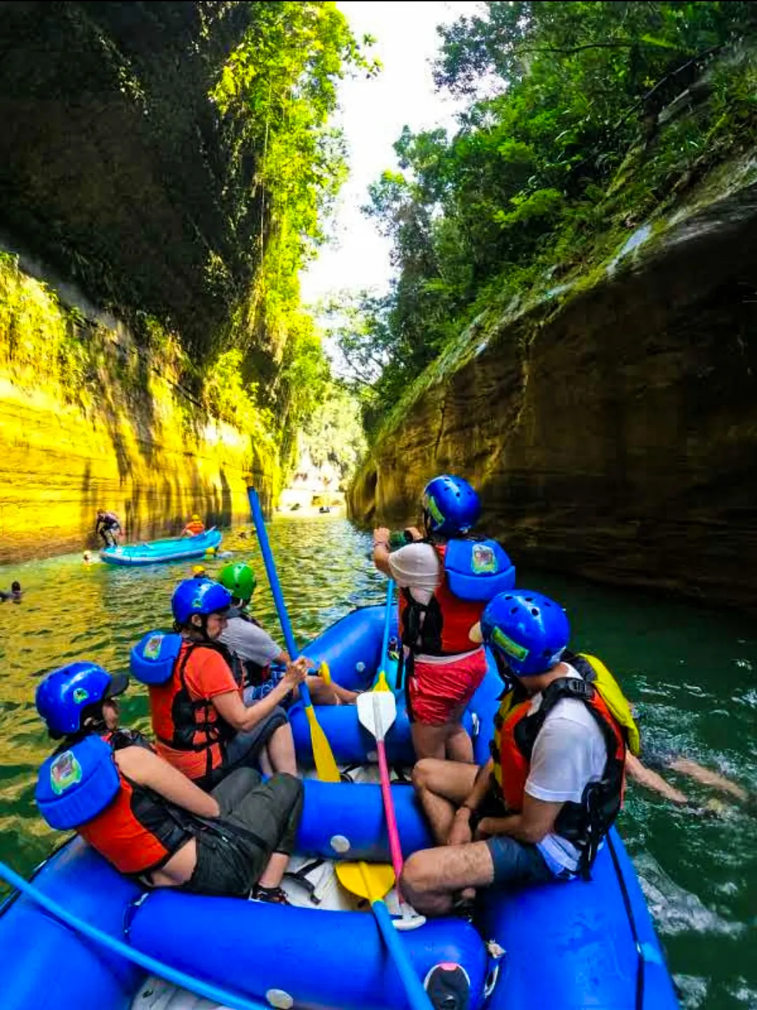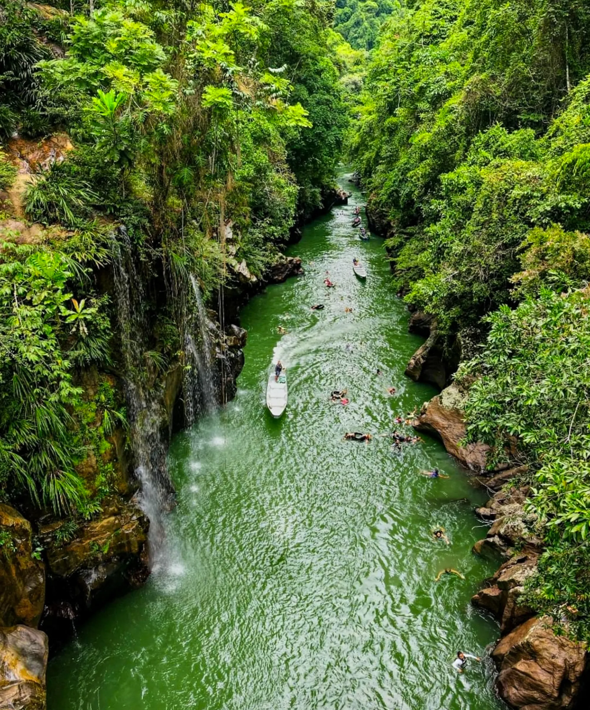 La travesía abarca 18 kilómetros de recorrido en botes de rafting por el paradisíaco corazón de la Serranía de la Macarena, un escenario natural completamente selvático donde se encuentran rocas milenarias que forman parte del Escudo Guayanés, una de las formaciones rocosas más antiguas del planeta. Durante el trayecto se pueden avistar más de 13 cascadas que nutren el río, convirtiendo esta experiencia en algo único.