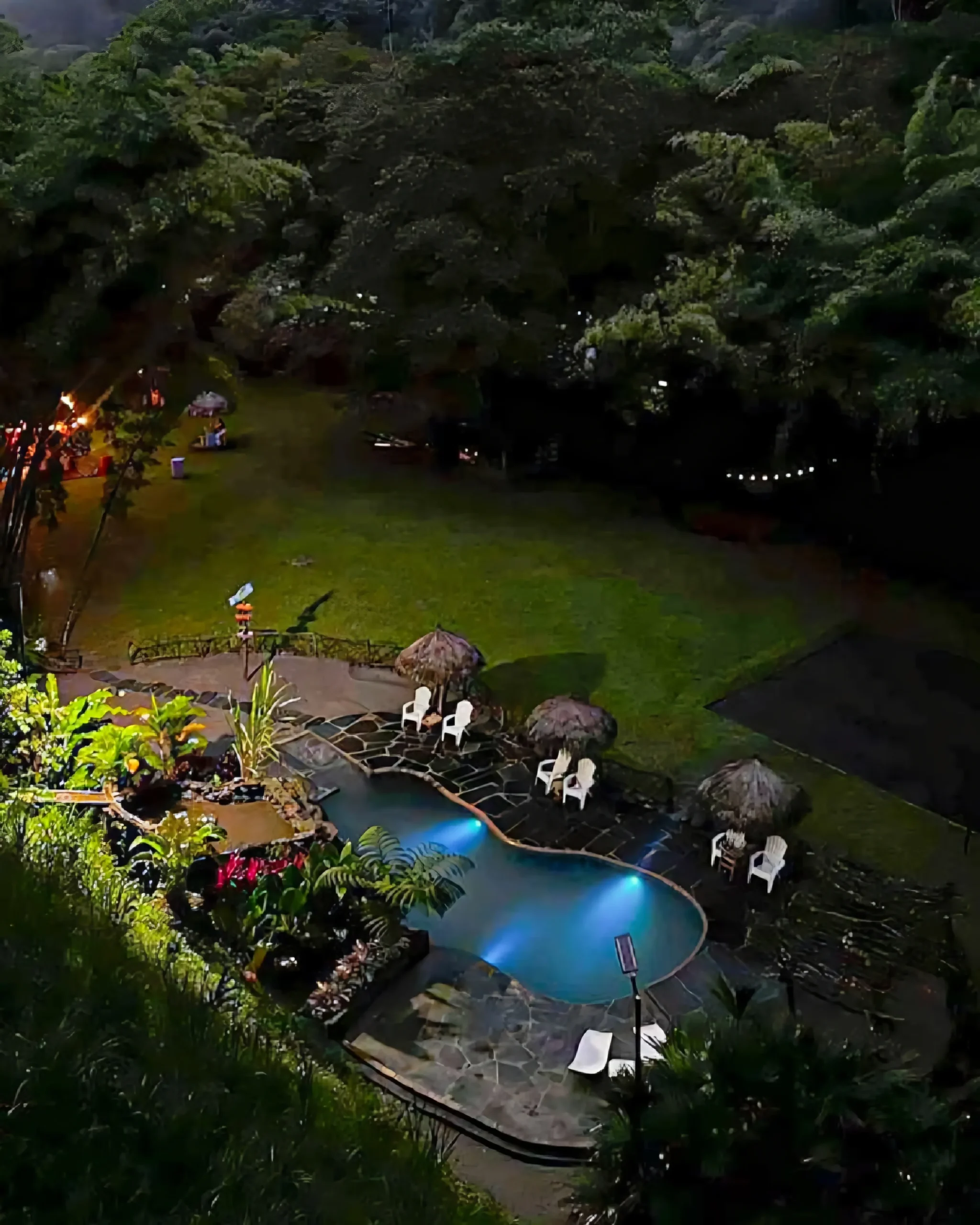Cabañas privadas de lujo, clima cálido promedio de 22°C, jacuzzi, fogatas y el sonido del río Negro como banda sonora.
